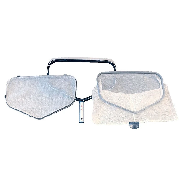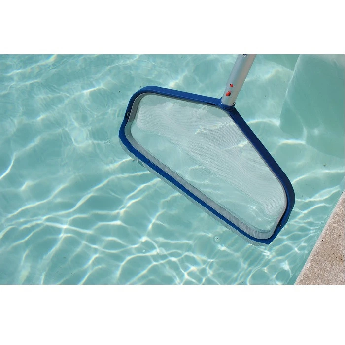 Dâun seul clic le filet Ă©puisette se met en place et permet de nettoyer avec un seul cadre, le fond et la surface de la piscine.